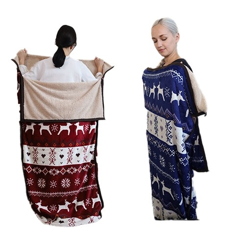 外側はフランネル毛布地、内側はもこもこ毛布地になっており寝袋タイプで冷たい空気をシャットアウトして全身を暖かく包みます。