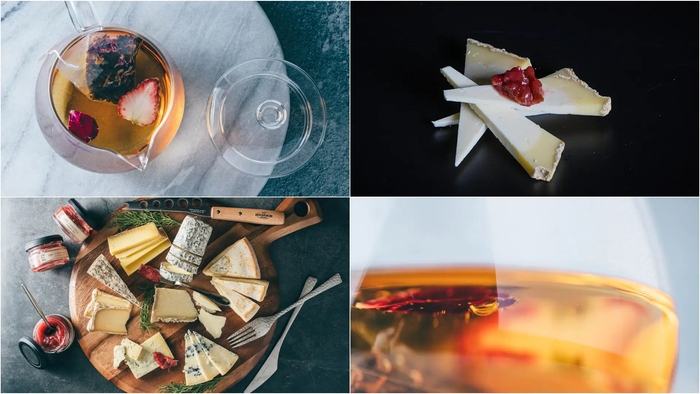この日のために用意した花のドリンクは2つ。食用バラをつかった「薔薇茶」「ローズベリーソーダ」です。目で楽しみ、舌で味わい、さらに鼻から抜ける香りの余韻をお楽しみいただけます。さらに、国産の香り高い食用バラをふんだんにつかったバラジャムとチーズのペアリングを用意。ペアリングに選んだチーズは「サルヴァクレマスコ」。ミルク由来の優しい甘味と薔薇ジャムの酸に負けないコク、薔薇ジャムに寄り添う酸味のバランスが特徴です。チーズショップLAMMAS(東京都港区六本木6丁目12−1ヒルズレジデンスA 1階)のチーズ職人にお選びいただきました。