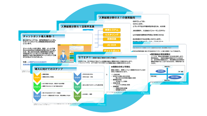 実際の導入事例・ニーズにマッチしたサービスのご紹介に加え、AI導入を検討している企業様に向けた導入フロー案までまとめております。
