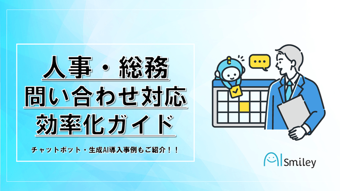 国内最大級のAIポータルメディア「AIsmiley」を運営する株式会社アイスマイリー(東京都渋谷区、代表取締役:板羽晃司)は、2024年5月20日(月)に人事・総務部の問い合わせ対応の効率化を事例やサービスとともに紹介する「人事・総務問い合わせ対応効率化ガイド」を公開しました。