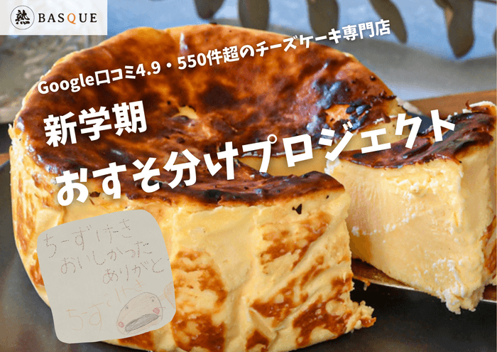 そしてこのたび、9月の“新学期”という特に子どもたちの心が不安定になりやすい時期に合わせて、製造過程で発生する型崩れしてしまった熟成バスクチーズケーキを無償で届ける「新学期おすそ分けプロジェクト」を開始いたします。