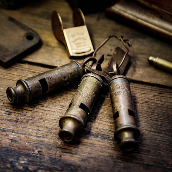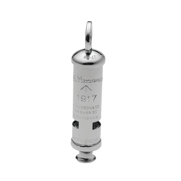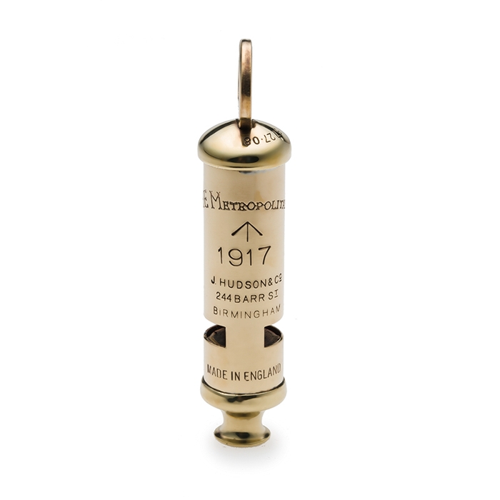 第一世界大戦中、歩兵隊の将校や下士官に支給された「トレンチ」ホイッスルが原型です。このレプリカは、1914年から1918年にかけて生産していたオリジナルの工具と金型を使用して製造されています。