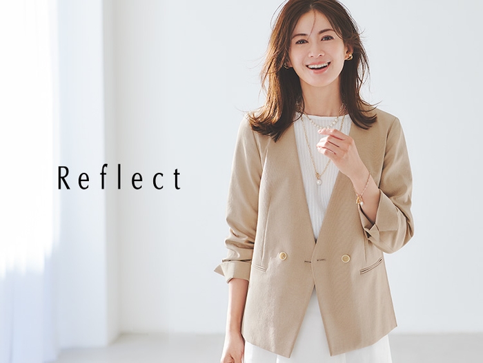 百貨店を中心に展開するReflect(リフレクト)は、いつも新しい感度にあふれながら自分らしく輝き女性らしい優しさ、柔らかさを忘れず、ものづくりに拘った日常のシーンに寄り添うアイテムを展開するレディースブランドです。