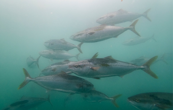 シマアジ:近畿大学で2番目に生産の多い魚種。国内養殖用稚魚の70%を近畿大学から供給している。