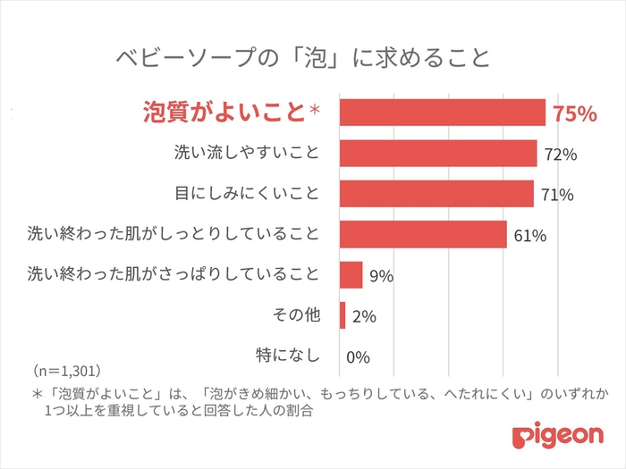 0才児の親の75%がベビーソープの「泡質のよさ」を重視