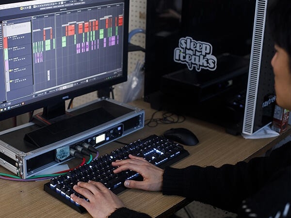 ステージの音響管理、BGM作成、動画の編集、イベント当日は会場設営や音響専門業者のサポートを行っています。ラジオドラマでは収録、編集を担当。放送部で所有する専門機材で日々スキルアップを目指しています。