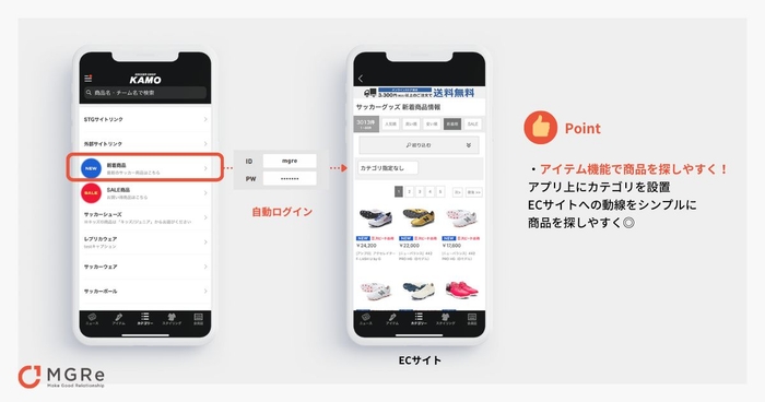 「サッカーショップKAMO」の公式アプリに「MGRe(メグリ)」が採用