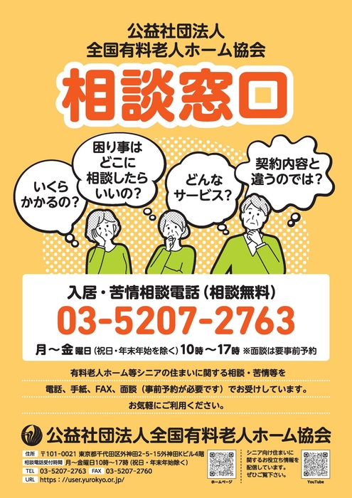 当協会では、こうした多様化するニーズに応えるため、専門の相談員が無料で対応する「相談窓口」を設置しており、電話・HPお問合せ(メール)・来訪(事前予約制)など柔軟な相談体制を整えています。ホーム探しでお悩みの方にとって、安心して相談できる場としてご活用いただいています。