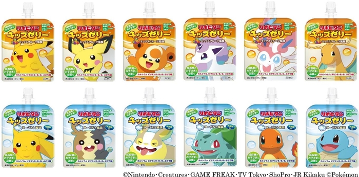 また、パッケージはおなじみのピカチュウに加え、ミックスフルーツ風味にはピチューやヒメグマ、ヨーグルト風味にはモルペコやワンパチなど、リポビタンキッズゼリーに新登場となるポケモンも多数採用し、楽しく選んでいただけるデザインといたしました。