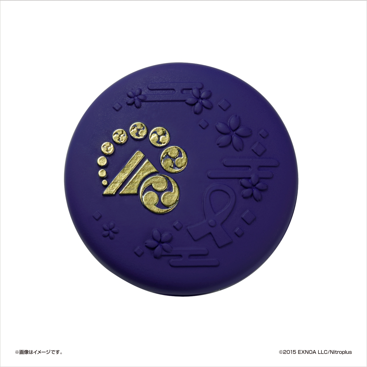 コンパクトケースには、刀剣男士をイメージしたデザインで金箔押しの紋をあしらいました。ケースの裏蓋は手鏡つきで持ち運びがしやすく、化粧直し用としてもオススメです。