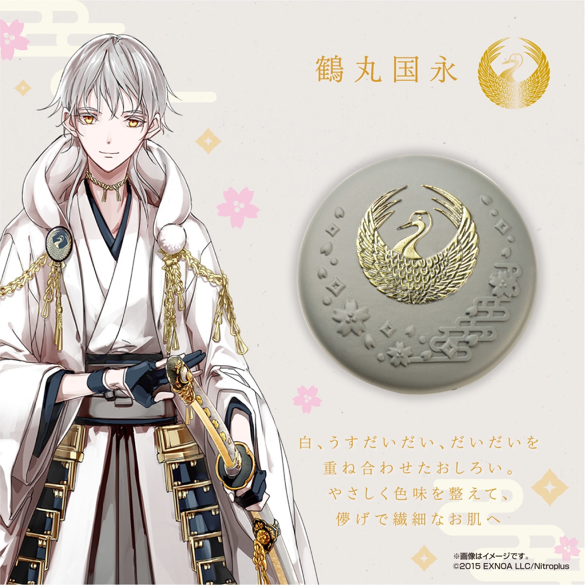 本商品は、PCブラウザ・スマホアプリゲーム「刀剣乱舞-ONLINE-」に登場する、“刀剣男士”2振り(鶴丸国永、山姥切長義)をイメージした『おしろい(フェイスパウダー)』です。