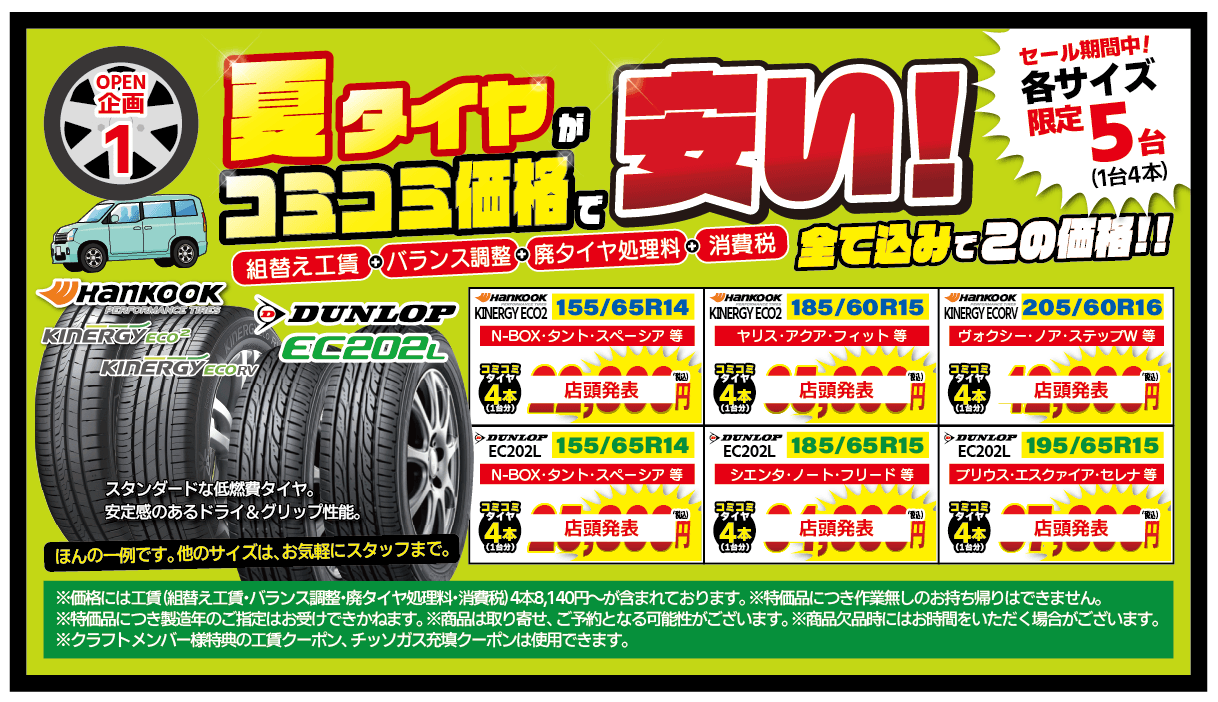 OPEN企画(1) 夏タイヤがコミコミ価格で安い!