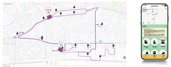 一例として、自動運転EVバスの定常運行を開始している茨城県常陸太田市では、行政情報アプリ「じょうづるさんナビ」内の「常陸太田デジタルマップ」を通じて運行情報を市民に提供しています。利用者は、バスの現在地や混雑状況をリアルタイムで確認でき、公共交通の利便性向上と利用促進に役立てられています。