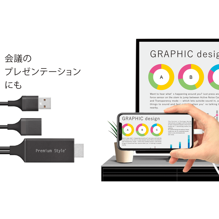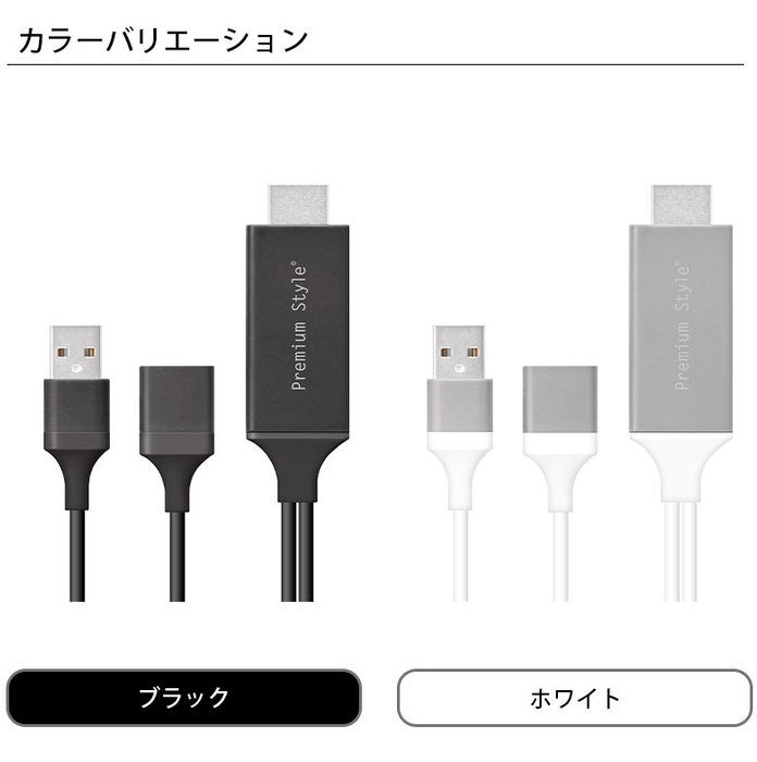 デバイスとディスプレイを繋ぐだけの簡単接続設計のHDMIミラーリングケーブル