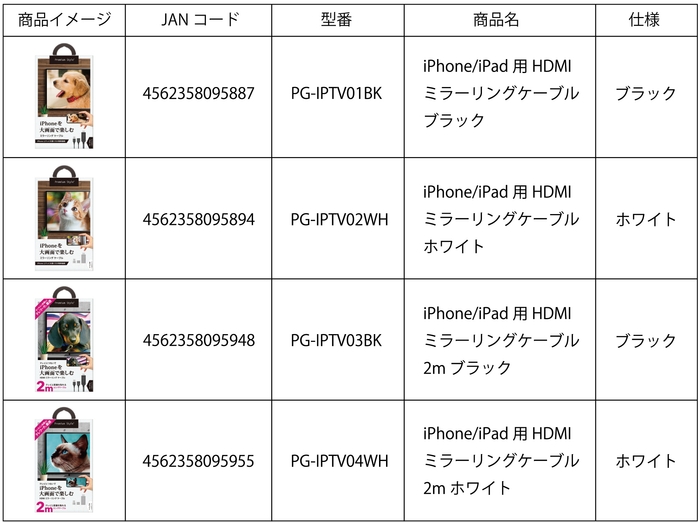 携帯電話やデジタルオーディオ端末等のアクセサリーの商品を企画・製造・販売を手掛ける株式会社PGA(本社:横浜市都筑区、代表取締役:黒木 光)は、このたびケーブル長が2mとご家庭のリビングなどでも取り回ししやすい長さを新たにラインナップに加えて iPhone/iPad用 HDMIミラーリングケーブルを2021年2月7日2021年12月末より発売販売を開始いたしました。