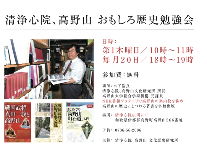 ブラタモリで高野山案内人を務めた木下先生による、『高野山・清浄心院のおもしろ歴史勉強会』開催中!/毎月第1木曜日、20日開催、参加無料