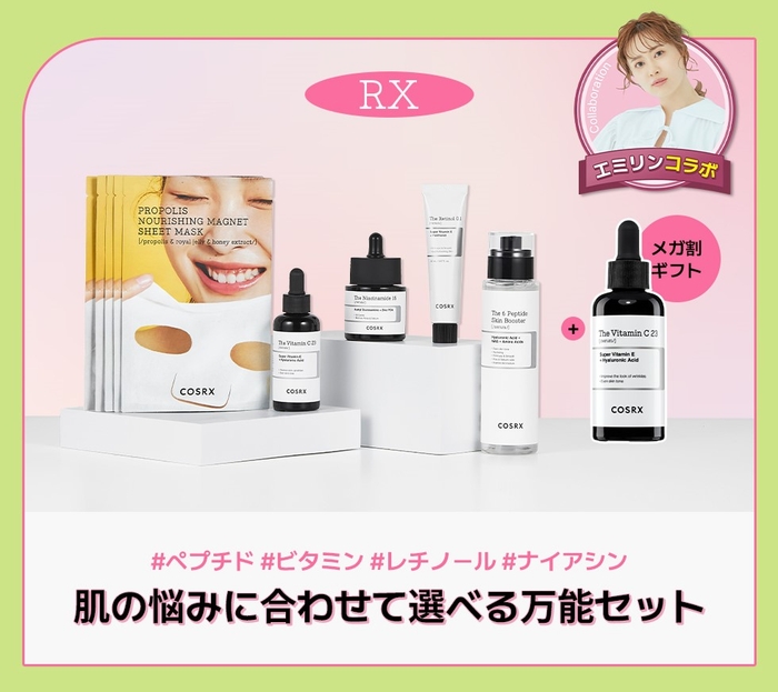 韓国スキンケアブランド「COSRX(コスアールエックス)」は2024年03月01日(金)〜 03月12日(火)までインターネット総合ショッピングモール「Qoo10」が開催するBIGセール「メガ割」に参加いたします。メガ割期間中には、肌荒れに合わせて選べる3種類の「肌悩み直撃セット」を発売いたします。さらに、幅広いコンテンツで大活躍中のインフルエンサー、エミリンさんとのコラボセットもご用意しており、お得にCOSRXの製品をお買い求めいただける機会ですので、是非お見逃しなく!