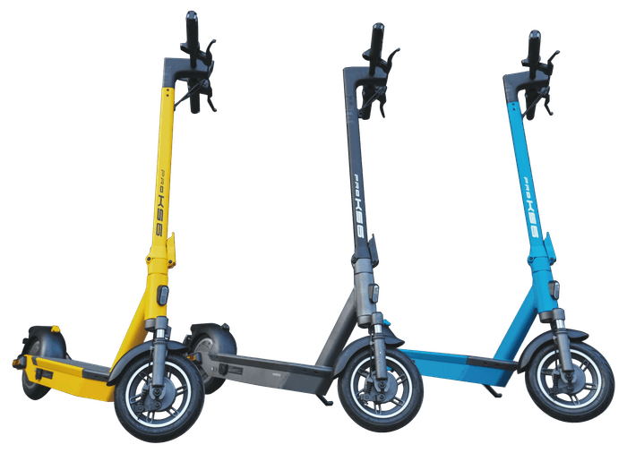 KS6 PROは、運転免許証を取得されていない方や通勤前のヘアスタイルの乱れなどが気になる方にお勧めの特定原付モデルの電動キックボードです。1回の充電で航続距離60km。モーター出力は500Wと圧倒的なパワーを備え坂道が多い日本の道路でもラクラク走行することが出来ます。道路運送車両法の遵守はもちろん、実証実験を繰り返し行った当社ならではの日本専用モデルになります。
