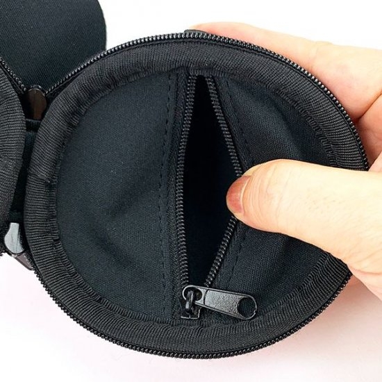 パカっと開くとファスナーポケットとリールが付いています。