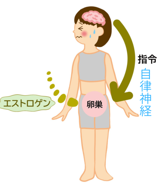 このように卵巣機能が低下する中、脳はエストロゲンを増やそうと指令をつづけ、その伝達役である自律神経が疲れてくる。つまり自律神経が大きな影響を与えているのです。