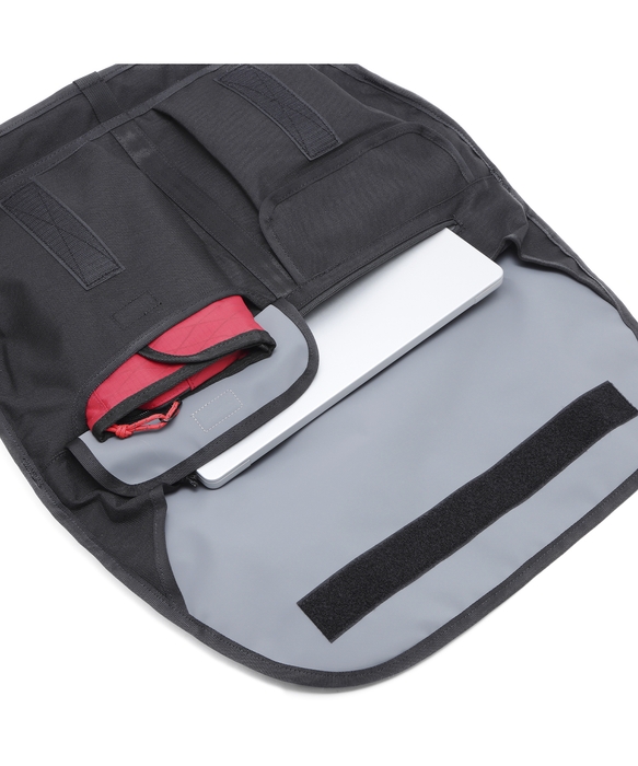 前面のポケットはCHROMEファン待望の、16インチまで対応のジッパー付きPCスリーブと、必需品収納のマグネット式フラップポケットに変更。ファン待望のキャリーハンドルは、デザインを損なわないようにアップデートいたしました。