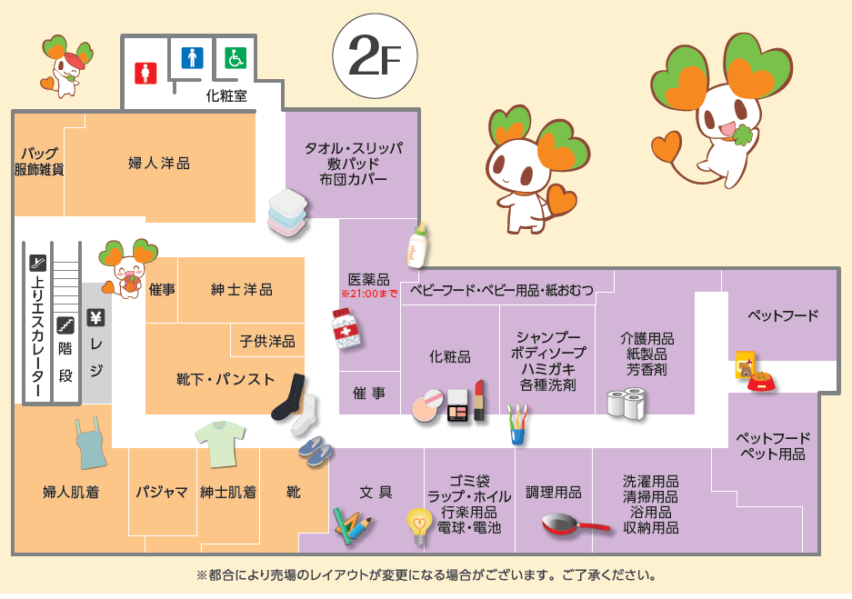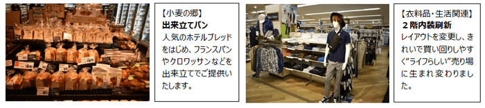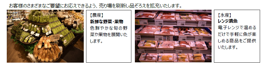 内装や商品ケースを刷新し、“おいしい” “ワクワク”を伝える売り場に変更するほか、2階にドラッグコーナーを新設することで利便性を高め、ワンストップショッピングを実現いたします。