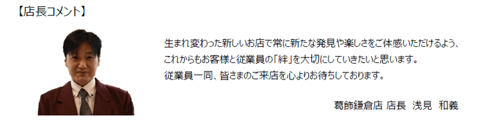 「常にお客様の立場で考え行動する」を合言葉に、地域の皆様から信頼される明るく元気な地域一番店を目指します。