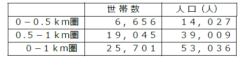 ・店舗から1km圏内は単身世帯比率が42.4%、2人世帯比率は26.0%と全体の約7割が少人数世帯です。