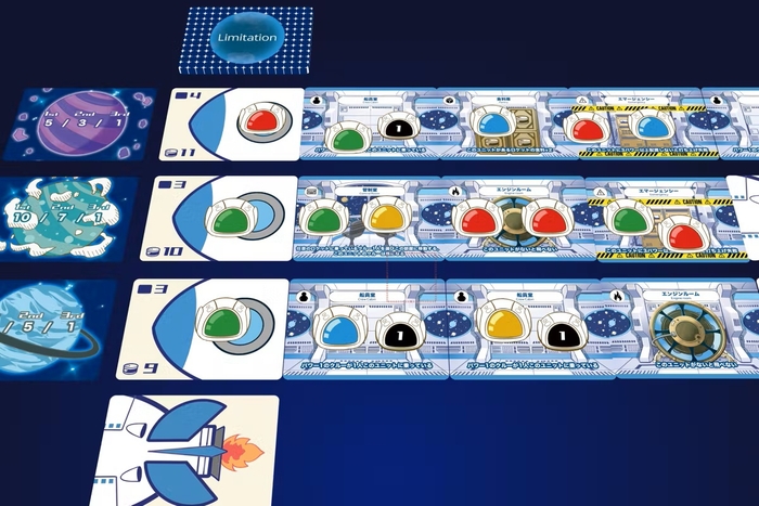 カードを並べることでロケットが組みあがります!エンジンを積み込む等の条件を満たし、ブースターカードを取り付ければ惑星へ向けて出発!