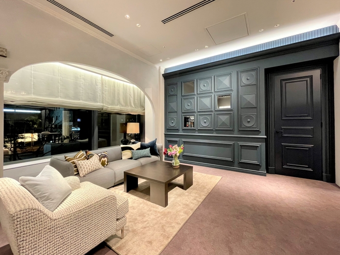 新ショールームでは、生地・壁紙・ラグ・照明・モールディングの幅広い商材をディスプレイ展示。