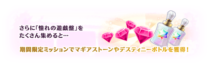 期間限定ミッションを達成することでマギアストーンや「オーバーリミッター」「デスティニーボトル」「レインボーオーブ」「マギアチップ」を獲得できます。