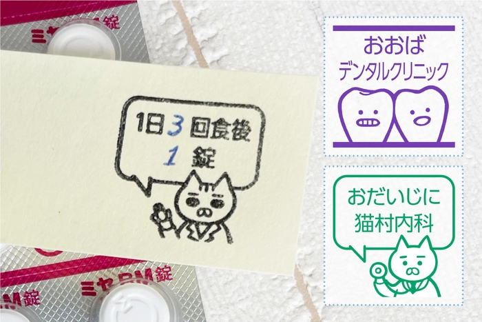 歯やお医者さん看護師さんなどのイラスト入りなので、クリニック名や錠剤数のメモ用など…、通院やお薬の時間を楽しくするきっかけづくりとしてお使いいただけます。