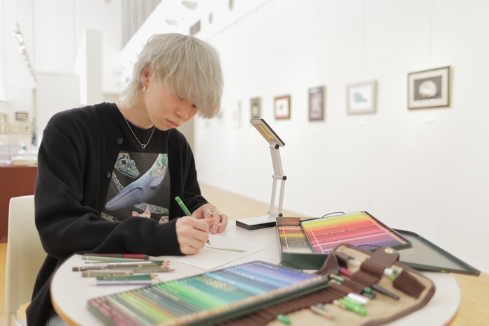 安部さんは、色鉛筆を使用して「生き物×宝石」を神秘的かつ独自性の高いイラストを描いており、20代にして大きな注目を集めています。