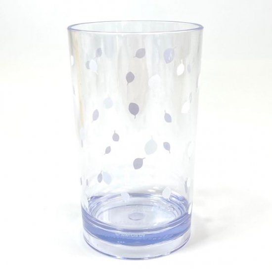 コップには葉っぱが散っているようなイラストがデザインされています。クリアで清潔感のあるデザインですよね。
