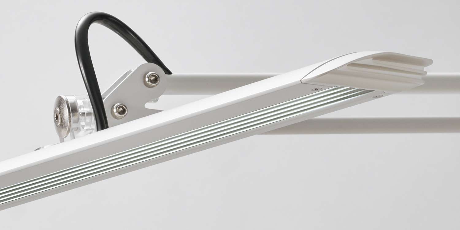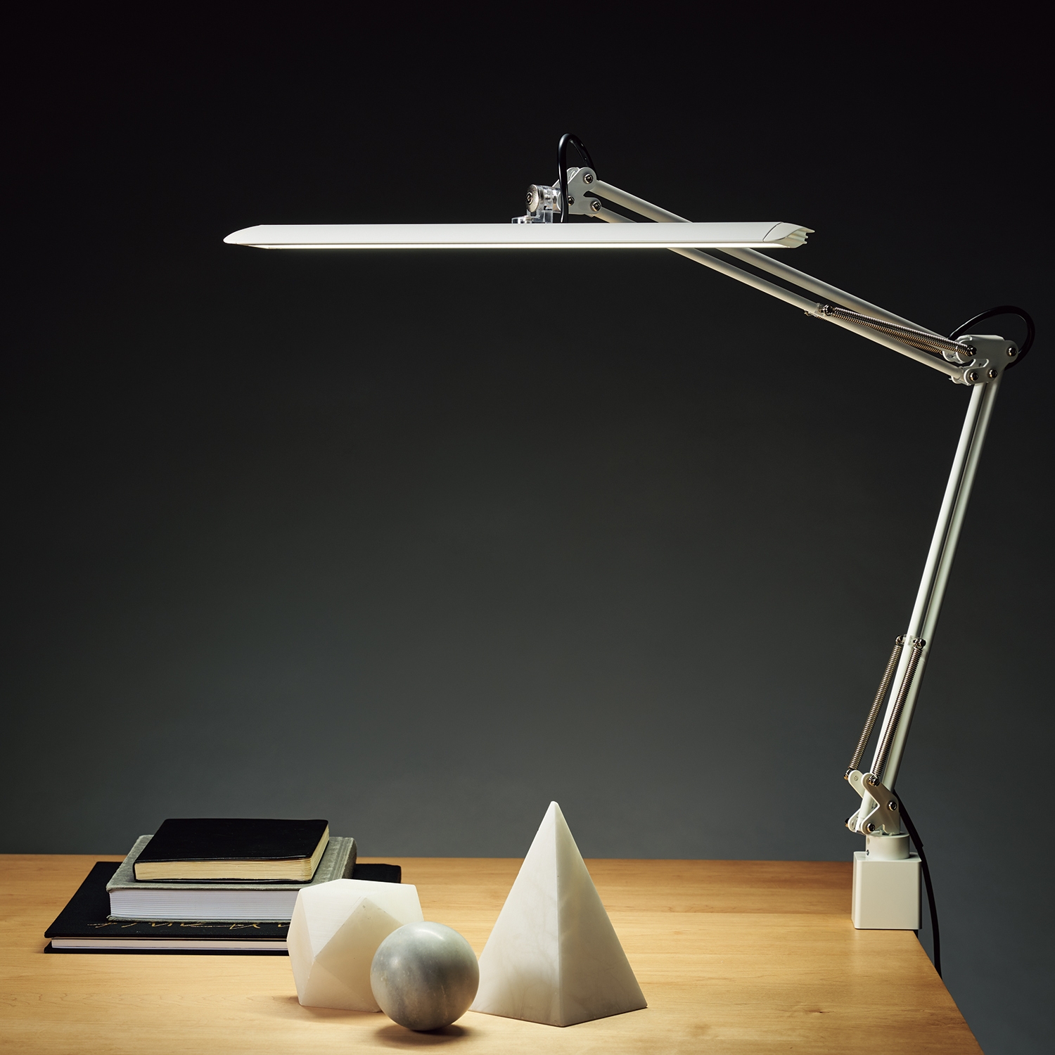 目に優しく眩しさを抑えた『Z-10G』は、光源が目に入りづらいグレアレスシェードで、オフィス、ご家庭、モノ作りの現場で作業に集中できるデスクライトです。空間に溶け込むシャープなデザインと幅広い作業に最適な明るさを実現しました。