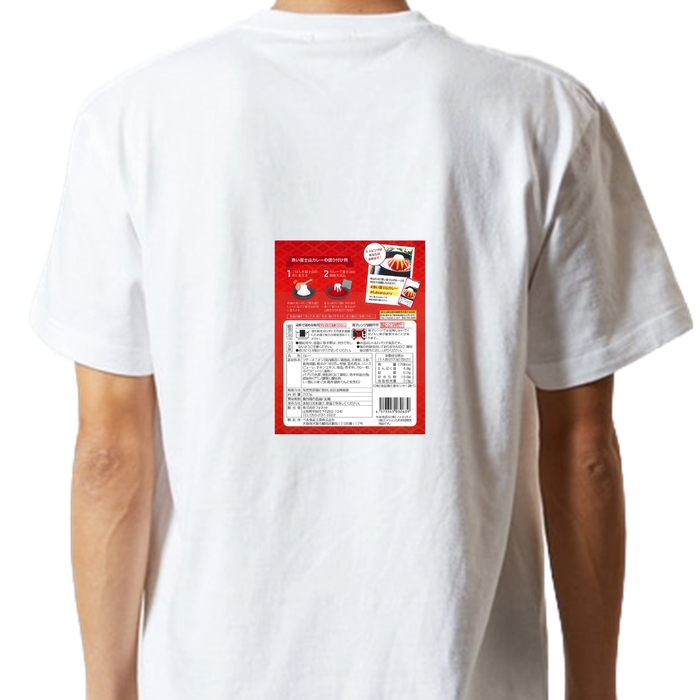 ご当地レトルトカレーの中で青いカレーで人気の青い富士山カレーのパッケージをフロントとバックの2箇所にプリントした限定Tシャツ。レトルトカレーのパッケージをそのままプリントしたグラフィックTシャツは販売店だけでしかデザインできないレアアイテム。