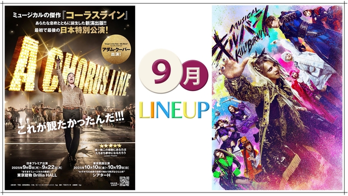 9月には、アダム・クーパーがザック役として出演し、新演出版の最初で最後の日本特別公演となる、ミュージカル『コーラスライン』(池袋)、 末満健一による大人気のTRUMPシリーズ最新作、ミュージカル『キルバーン』(池袋)など、関東近郊で開催される多様なジャンルの舞台公演が予定されています。