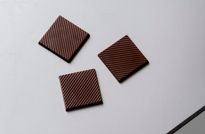 焙煎ごぼうの新たな可能性を発掘するために、素材の機能性研究、製造技術開発、用途開発研究を日夜続けています。元々はプラントベース食品の開発中にできた失敗作でしたが、研究を続けていく中で、ごぼうとカカオに8つもの香気成分が共通することを発見。さらに、ごぼうの粒子を限りなく小さくして、チョコレート同様の優しい口どけを再現。ごぼうの香りを残しながら、美味しさを両立させるために128回もの試作を繰り返し、かつてない新しい美味しさと食感にたどり着いたのです。
