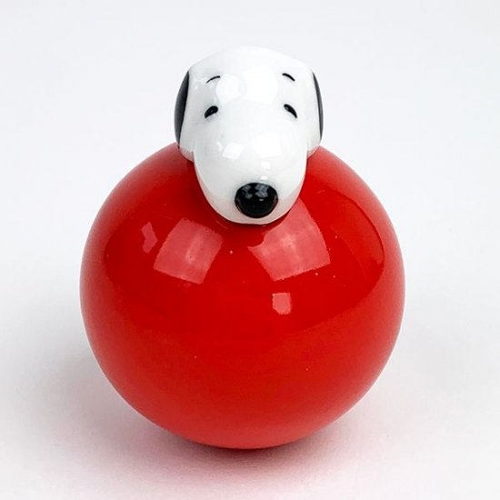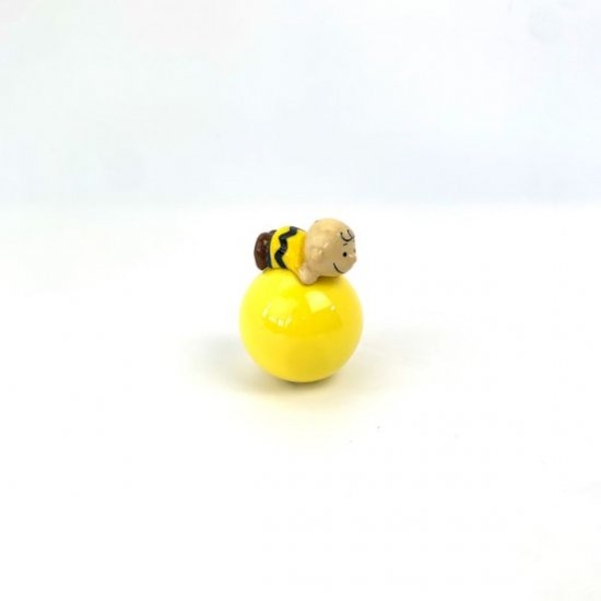 まんまるの球体に身体を預けたチャーリーブラウンです。この球体は風船?ガムボール?ふわふわボール?いろんな妄想が広がる起き上がりこぼし♪ちょこんと乗ったチャーリーブラウンが可愛いですよね。