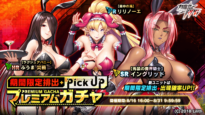 期間中は新規キャラクター「『【兎装の魔界騎士】イングリッド』『【ラグジュアバニー】ふうま 災禍』『【霧中の兎】リリノーエ」の出現確率がアップしております。