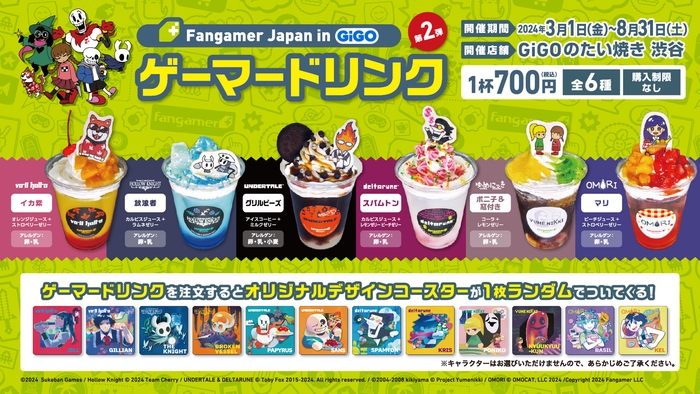 株式会社GENDA GiGO Entertainment(本社:東京都港区 代表取締役社長:二宮 一浩 以下当社)は、GiGO渋谷 「Fangamer Japan in GiGO」で2024年3月1日からコラボドリンク「ゲーマードリンク 第2弾」の販売を開始いたします。有名ゲームタイトルをイメージした6種類のドリンクは見た目以上に 味にもこだわったデザインです。