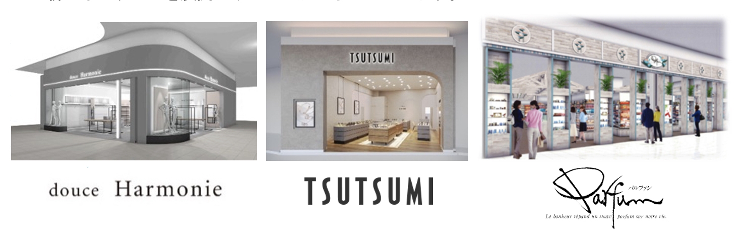 ・1Fでは、トレンドからベーシックまで国内外のブランドを幅広く取り扱い、ちょっぴり背伸びした女性のクローゼットをイメージしたセレクトショップ「ドゥースハルモニ」、ジュエリーのセレクトショップ「ジュエリーツツミ」が内装を刷新。また、国内有名ブランドやフレグランスを集めた、女性の24時間を心も体も美しく彩る化粧品専門店「パルファン」が、新たなブランドを展開しリニューアルオープンします。