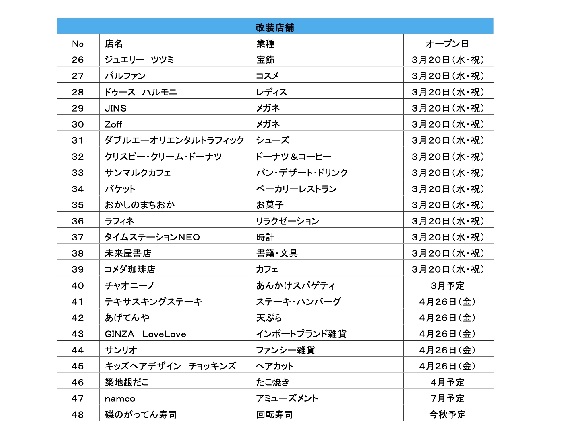 ・「※」開店済み店舗