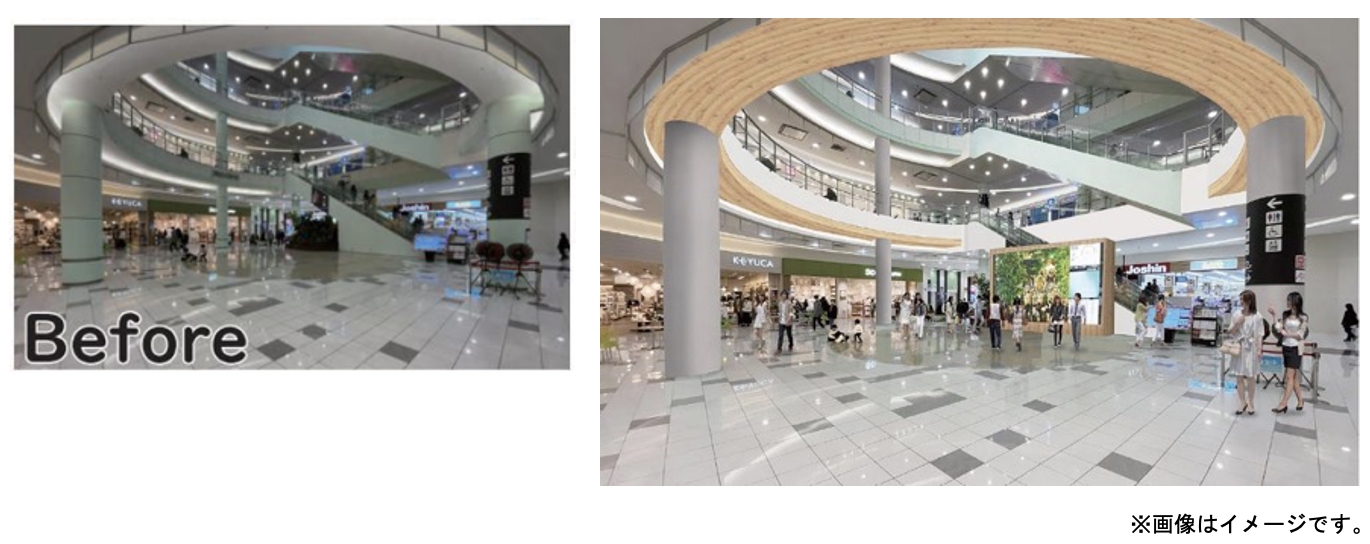 施設面では、座席数を約200席拡大するフードコートの刷新をはじめ、子どもの遊び場のフルリニューアルを実施。そのほか、イベントスペースの吹き抜け空間を刷新し大型サイネージを新設するなど、地域の皆さまの集いの場として、より快適に、居心地よくお過ごしいただける施設へと進化します。