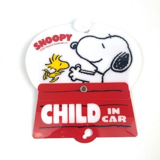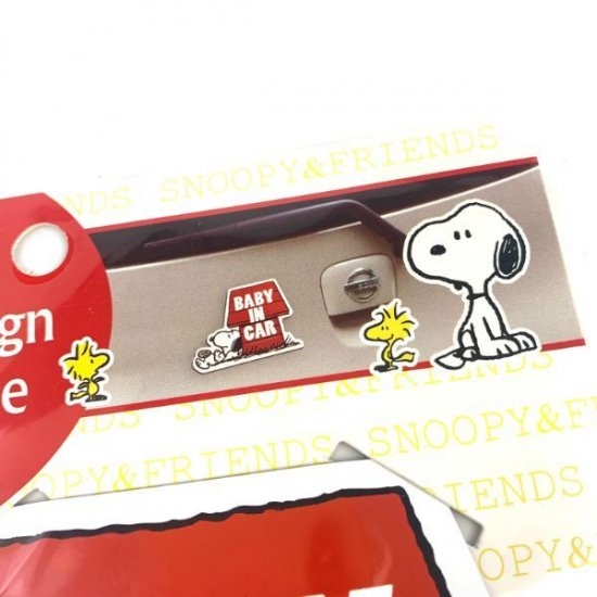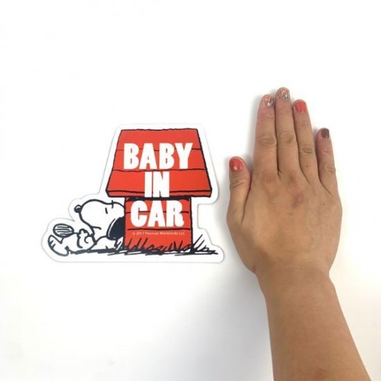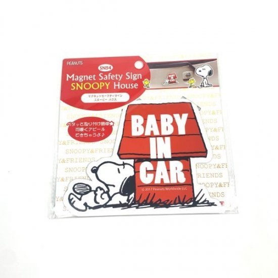 赤いスヌーピーハウスとスヌーピーデザインのセーフティサイン!ちょっとだらだら気味のスヌーピーに癒されます♪マグネットでピタッとくっつくから取り付けも簡単ですよ。後続車の人たちも癒せるかも。。。