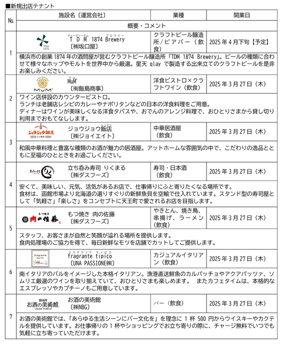 「星天qlay(ホシテンクレイ)」が全面開業 Eゾーンの店舗を3月27日(木)に開業【相鉄アーバンクリエイツ・相鉄ビルマネジメント・相鉄不動産】