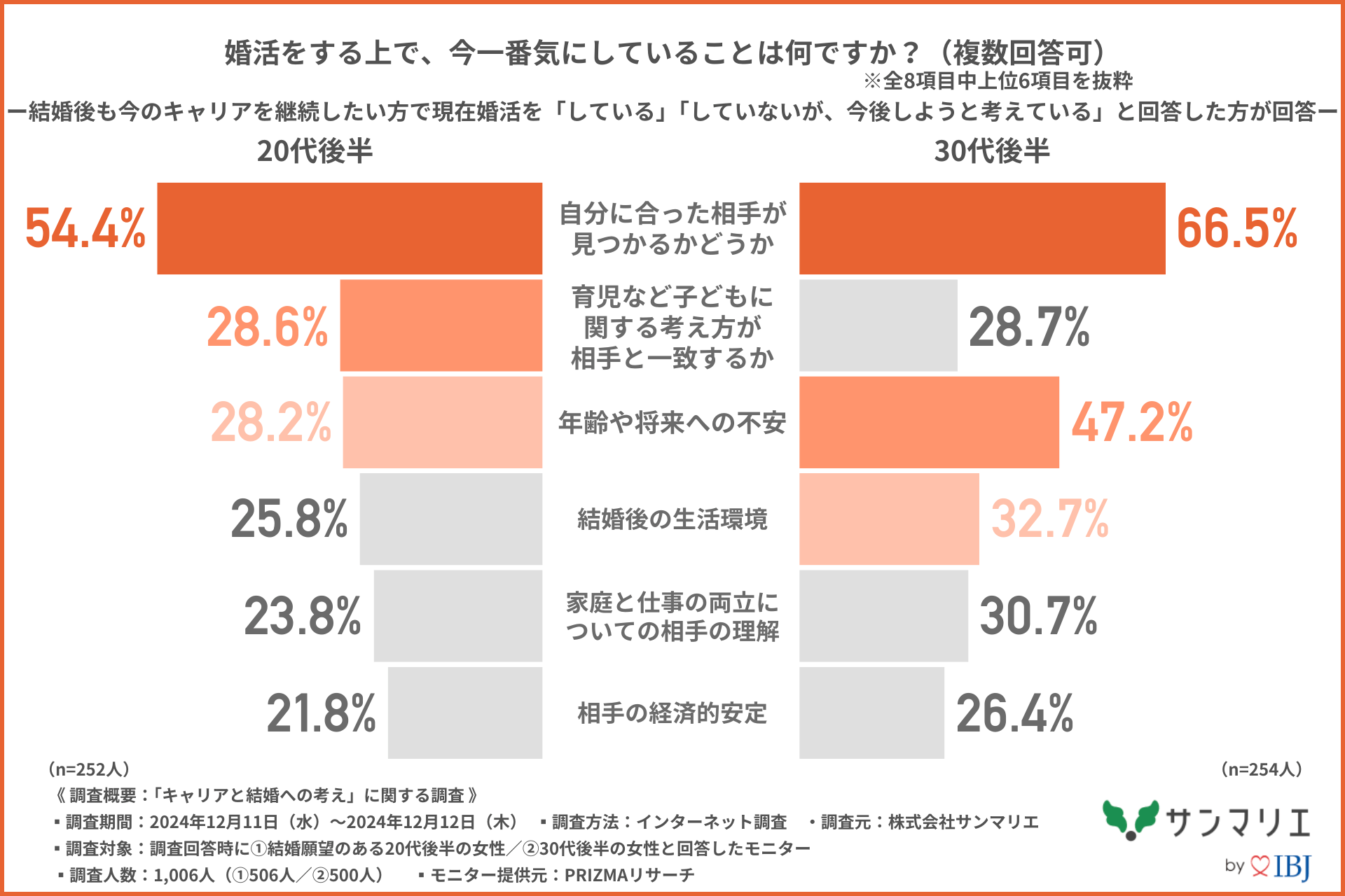 どちらの世代の方も、婚活においては自分に合った相手が見つかるかどうかを一番気にしている方が多いようです。