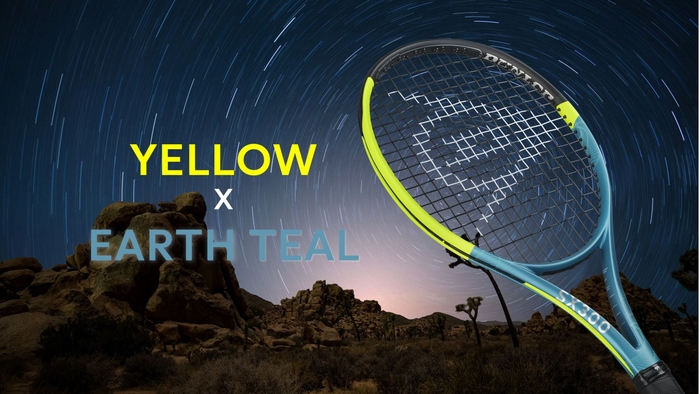 これまでイエロー×ブラックのイメージが強かった「SX」シリーズのイメージを一新し、イエローにEARTH TEAL(アースティール)というこれまでにないカラーを採用しました。今回のメインビジュアルは、自然からのインスピレーションを受け、壮大な荒野にたたずむラケットが印象的なイメージです。昨今のトレンドカラーである“アースティール”カラーを採用し、その中にはスピンをイメージする渦のようなデザインが施されています。