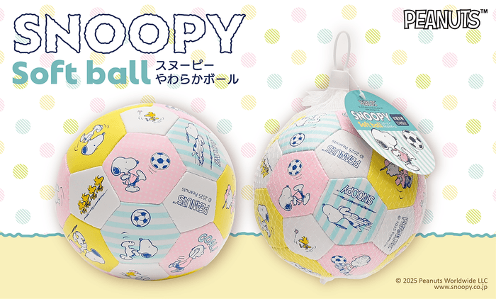 「スヌーピーやわらかボール」はスヌーピーがデザインされた布ボールです。いろいろなボール遊びをしたPEANUTSの仲間たちが優しい色合いで描かれています。軽く柔らかい素材を使用しているので小さいお子様も安心して遊んでいただけます。