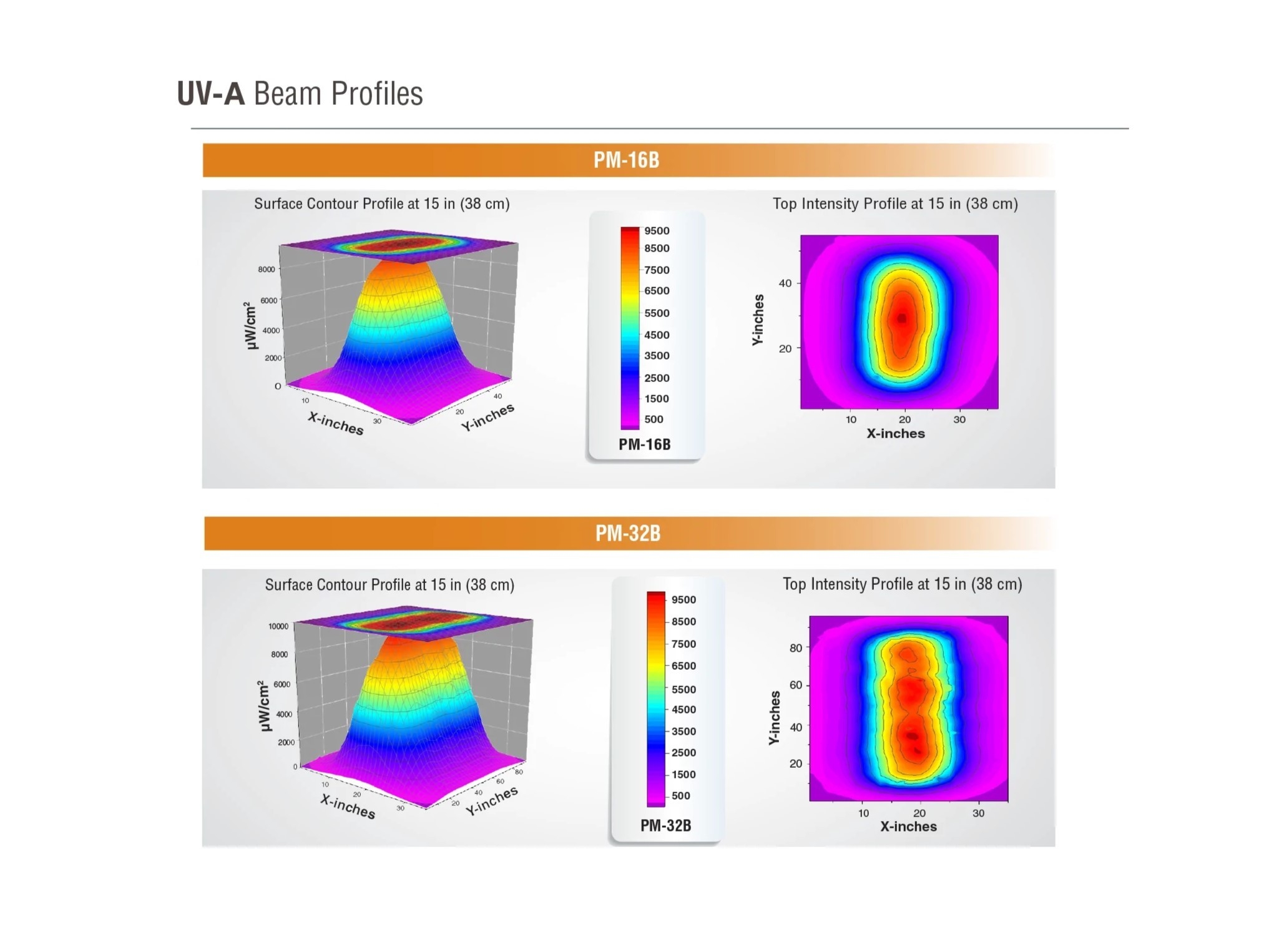 照射範囲(38cm,1,200μW/cm2以上):PM-16B 60x27cm、PM-32B 110×27cm